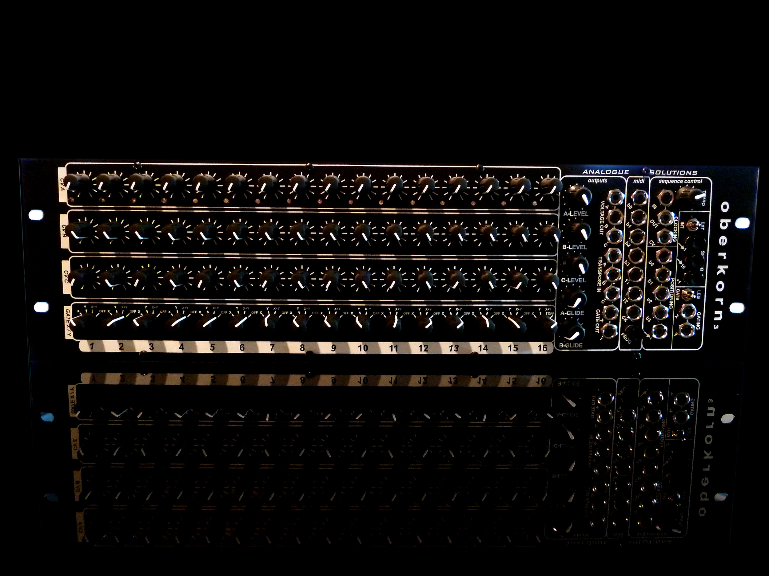 48 CV knobs, 16 Gate switches, 17 LEDs